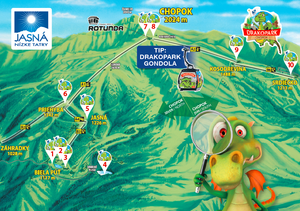 Priateľský drak Demián sa už teší na svojich kamarátov, ktorí sa vydajú po jeho stopách. Na Južnej strane Chopku, na lanovke A5 Krupová - Kosodrevina, nájdete jedinečnú Drakoparkovskú gondolu, ktorou sa môžete voziť počas celého leta. Gondolou sa môžete previezť aj keď putujete zo severnej strany Chopka. Jazdy piatimi lanovkami na opačnú stranu kopca sú zahrnuté v cene lístka Chopok package.